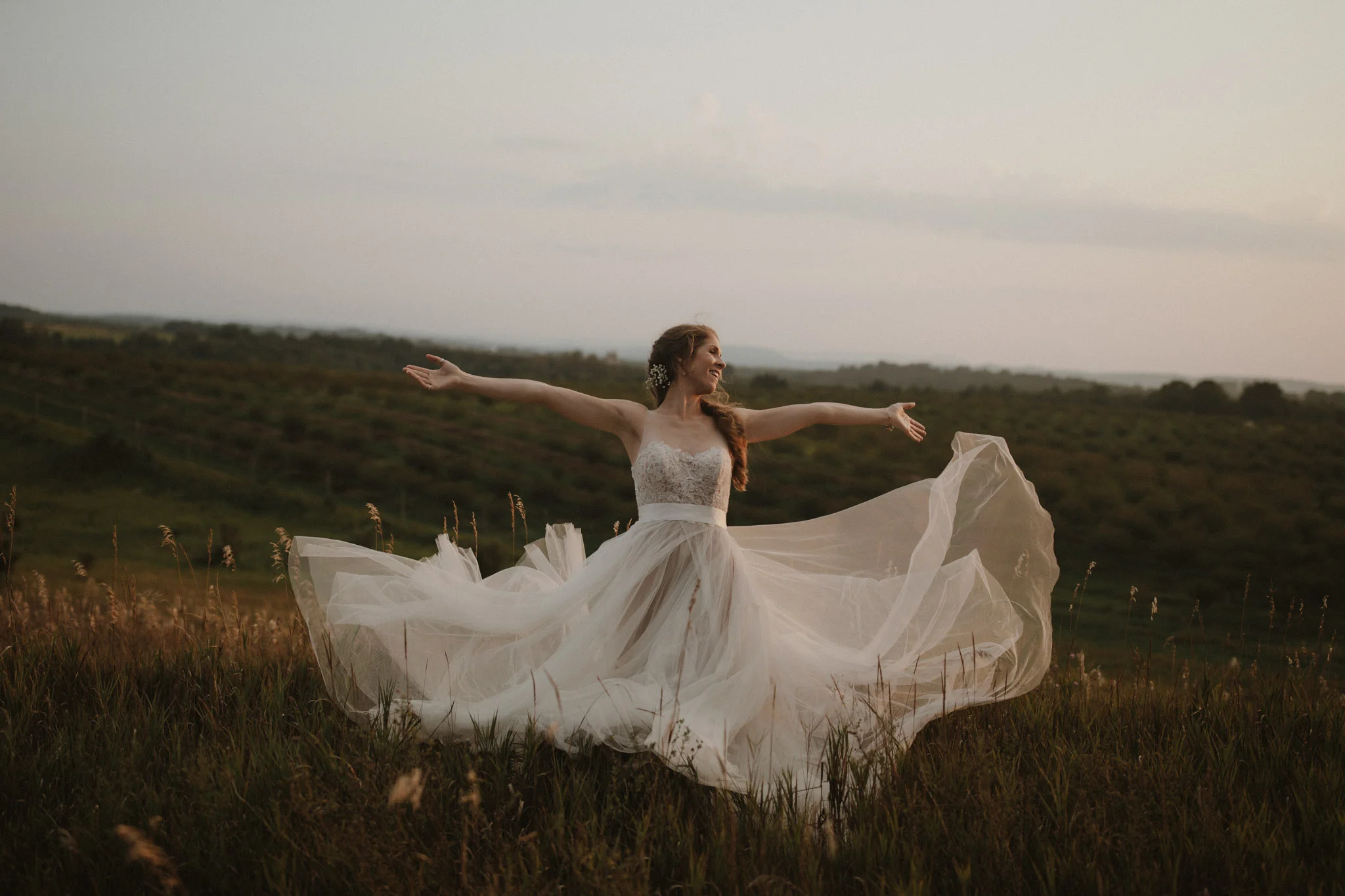With the guests beginning to arrive, a late summer wedding in the country is about to take place before the sun sets. Lara and Nate, chose the idyllic scene at a rustic Air BnB farmhouse near Traverse City, MI for their venue. Both Michigan natives, they are surrounded by loving family and friends.